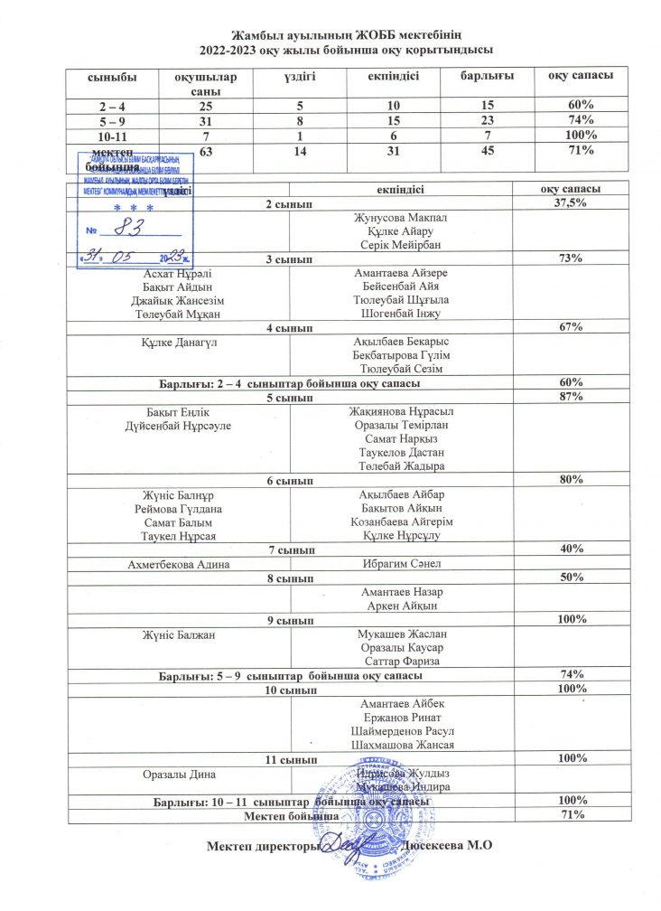 2022-2023 оқу жылының оқу сапасы