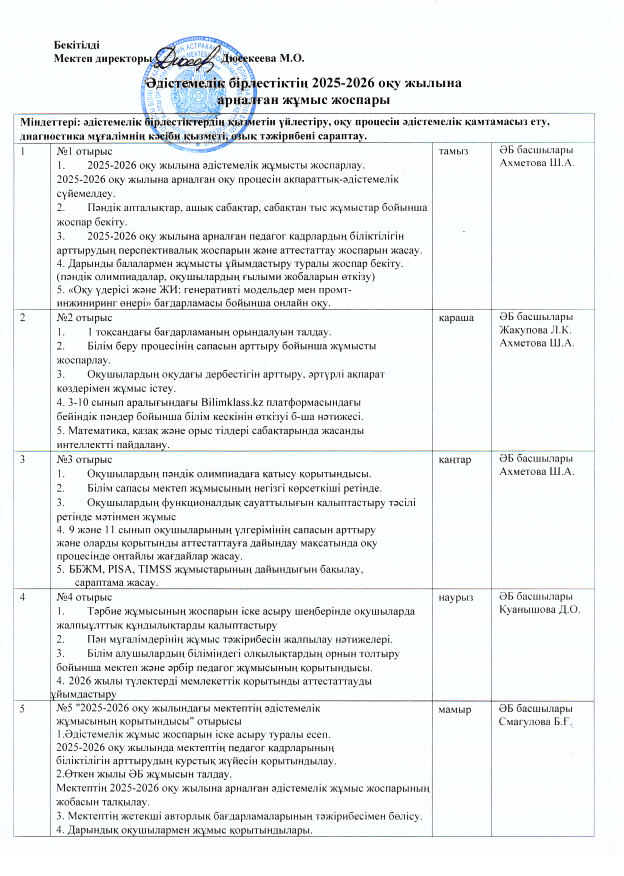 Әдістемелік бірлестік жоспарлары 2025-2026 оқу жылы