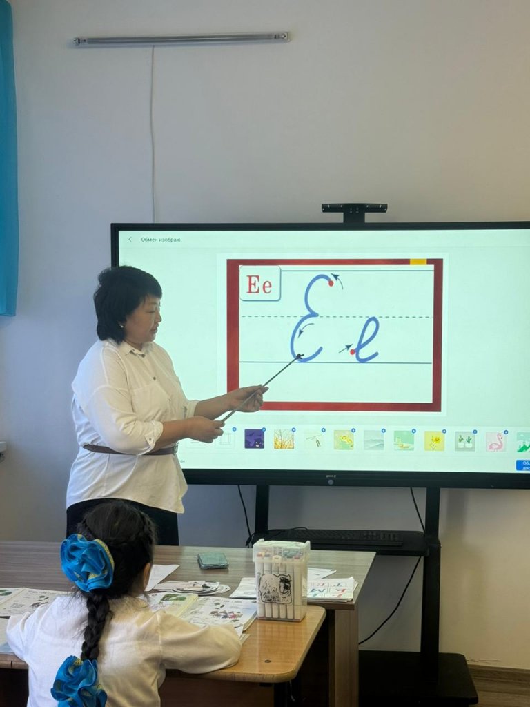 20 қазан күні бастауыш сынып онкүндіктін жоспарына сәйкес "Жамбыл ауылының ЖОББМ" КММ-де 1 сыныпта әліппе пәнінен «Е - дыбысы мен әрпі» тақырыбында ашық сабақ өтті.